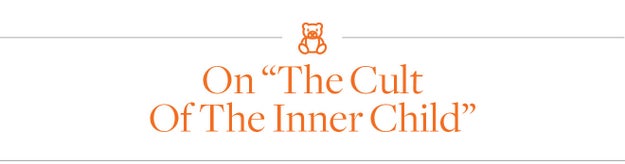 “To respect and cherish the freshness of perception and the vast, polymorphous potentialities of childhood is one thing. But to say that we experience true being only in childhood and that creativity is an infantile function — that’s something else. I keep meeting this devaluation of growing up in fiction, and also in the cult of the Inner Child. [...] The innocence, the unjudging, unqualified openness to experience of the young child, can be seen as a spiritual quality attainable or reattainable by the adult. And I think this is what the idea of the Inner Child originally, or optimally, is all about. [It] makes no sentimental plea to us to nourish the child we were by denying the value of maturity or by trying to be a child again. However conscious we are of the freedom and awareness and joyfulness we lose as we age, we live a full human life not by stopping at any stage, but by becoming all that is in us to become.”