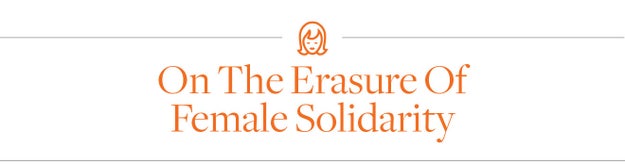 “Instead of rising from the rigorous control of aggression in the pursuit of power, the energy of female solidarity comes from the wish and need for mutual aid and, often, the search for freedom from oppression. [...] So when the interdependence of women is perceived as a threat to the dependence of women on men and the childbearing, child-rearing, family-serving, man-serving role assigned to women, it’s easy to declare that it simply doesn’t exist. Women have no loyalty, do not understand what friendship is, etc. Denial is an effective weapon in the hands of fear. The idea of female independence and interdependence is met with scoffing hatred by both men and women who see themselves as benefitting from male dominance. Misogyny is by no means limited to men. Living in ‘a man’s world,’ plenty of women distrust and fear themselves as much or more than men do.”